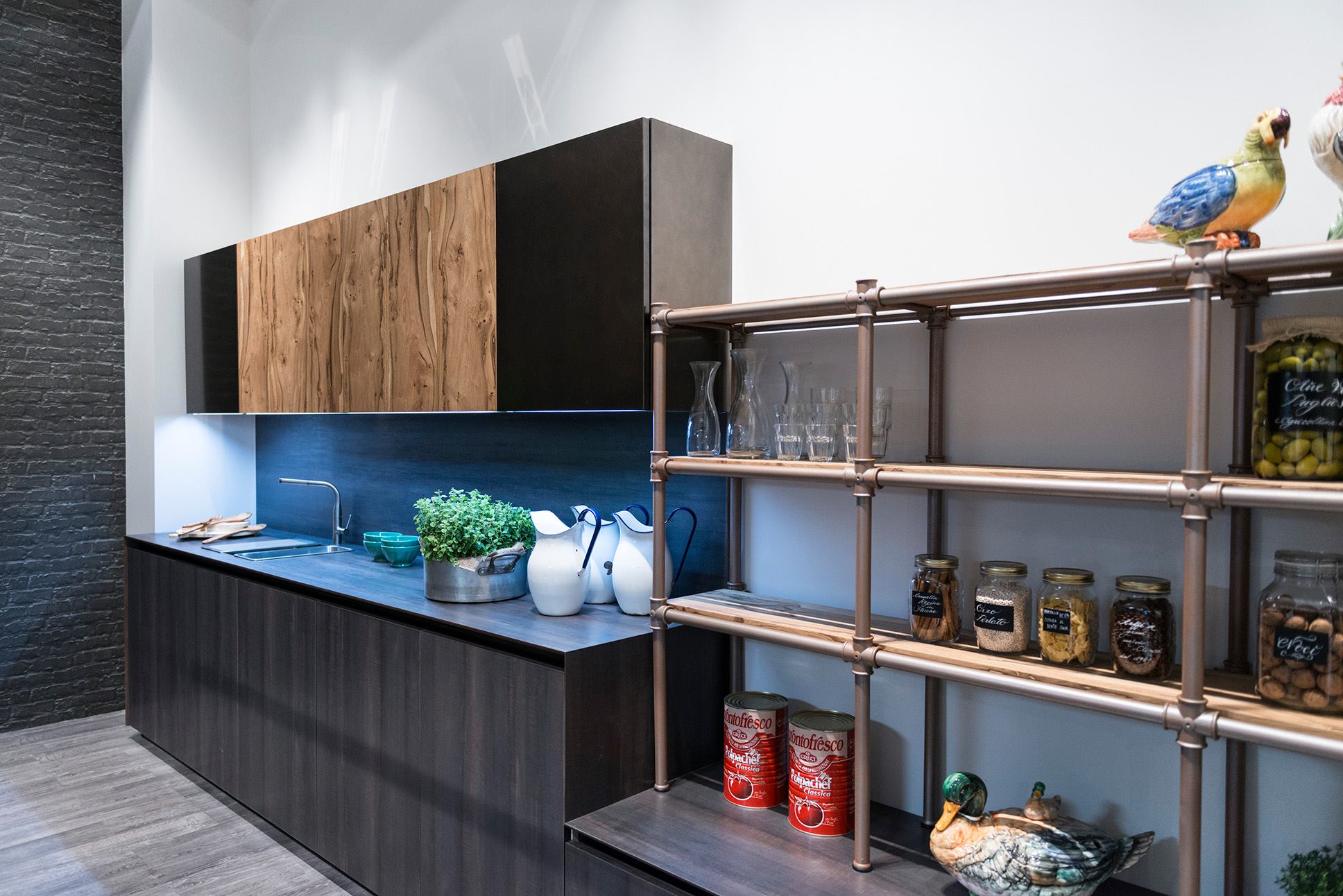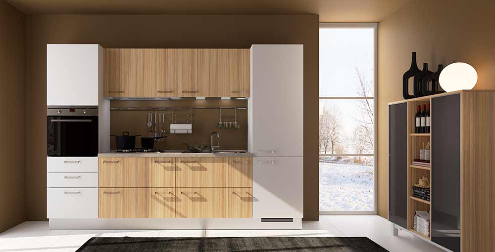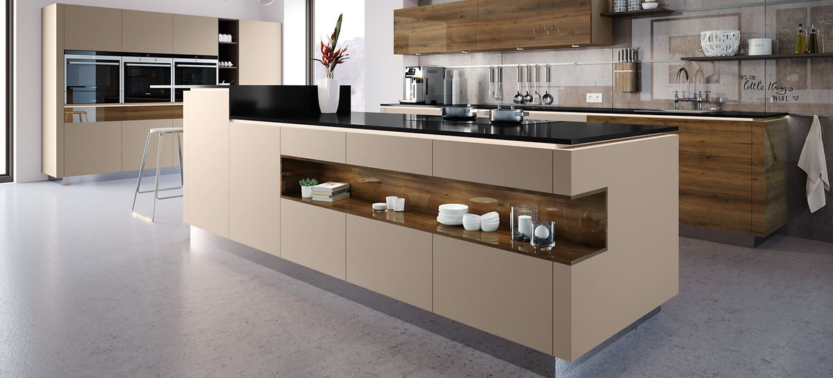 Расширение дизайнерских возможностей в превосходном сочетании эмали и шпона на полотне одного фасада.